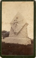 Gettysburg 1st Mass Monument Image - Gettysburg Pa Battlefield Monument image of the the 1st Massachusetts. The size is 5 1/4" wide by 8 1/2", reverse blank and same color as border. Overall good showing honest age & border wear. - Price is $ 85.00 plus shipping and insurance. Item - I-13-2970