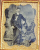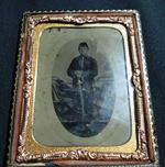 Union Officer Soldier - Union Officer standing proud with his sword. Image is a 1/4 plate tintype, 1/2 case, 4 1/4" x 3 1\4", plate has a 1" scratch at waist. - Price is $ 250.00 plus shipping and insurance. Item - I-4