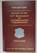 History of The 51st Regiment of Pennsylvania Volunteers - Reprinted 1998 from 1869, 722 pages, hard back, book size is 5 1/2" by 8 3/4" by 1 3/4" thick, condition is new. - Price is $ 65.00 plus shipping and insurance. Item - I-35-413