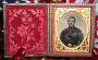 Son of Union Soldier Tin Type - Excellent Content & hard to find Son's of the Union Soldier, it is difficult to find these. Image is a 1/4 plate, shows a minor crease mark which runs bottom right mid way, the size is 3 1/4" by 4 1/4", case overall good conditions, top 2 corners cracked with little harm, has a replaced or repaired binder, GREAT Content. - Price is $ 200.00 plus shipping and insurance. Item - I-20-97
